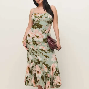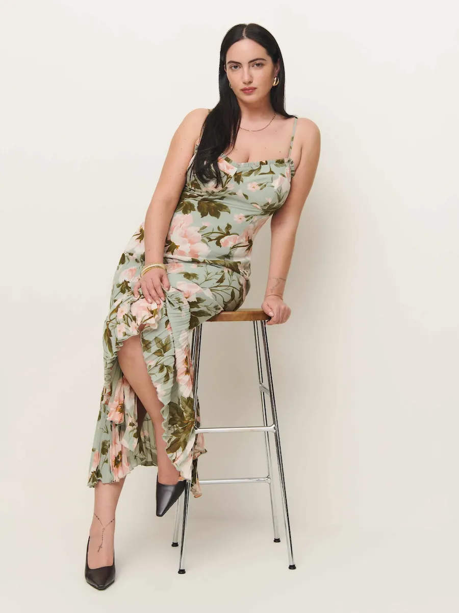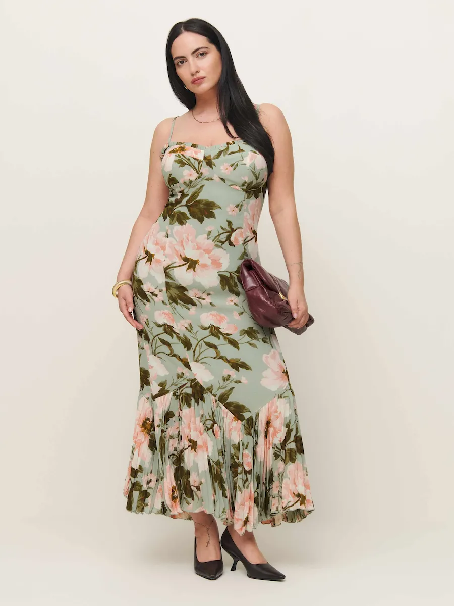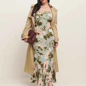 The model is wearing a size 14 and is 5’8″, 33″ waist, 47″ hips, 41″ bust.