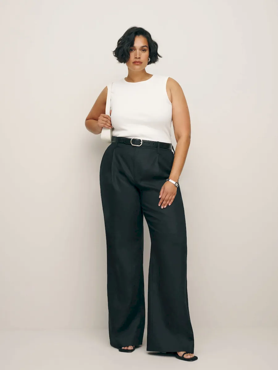 The model is wearing a size 14 and has a 29″ waist, 43.5″ hips.
