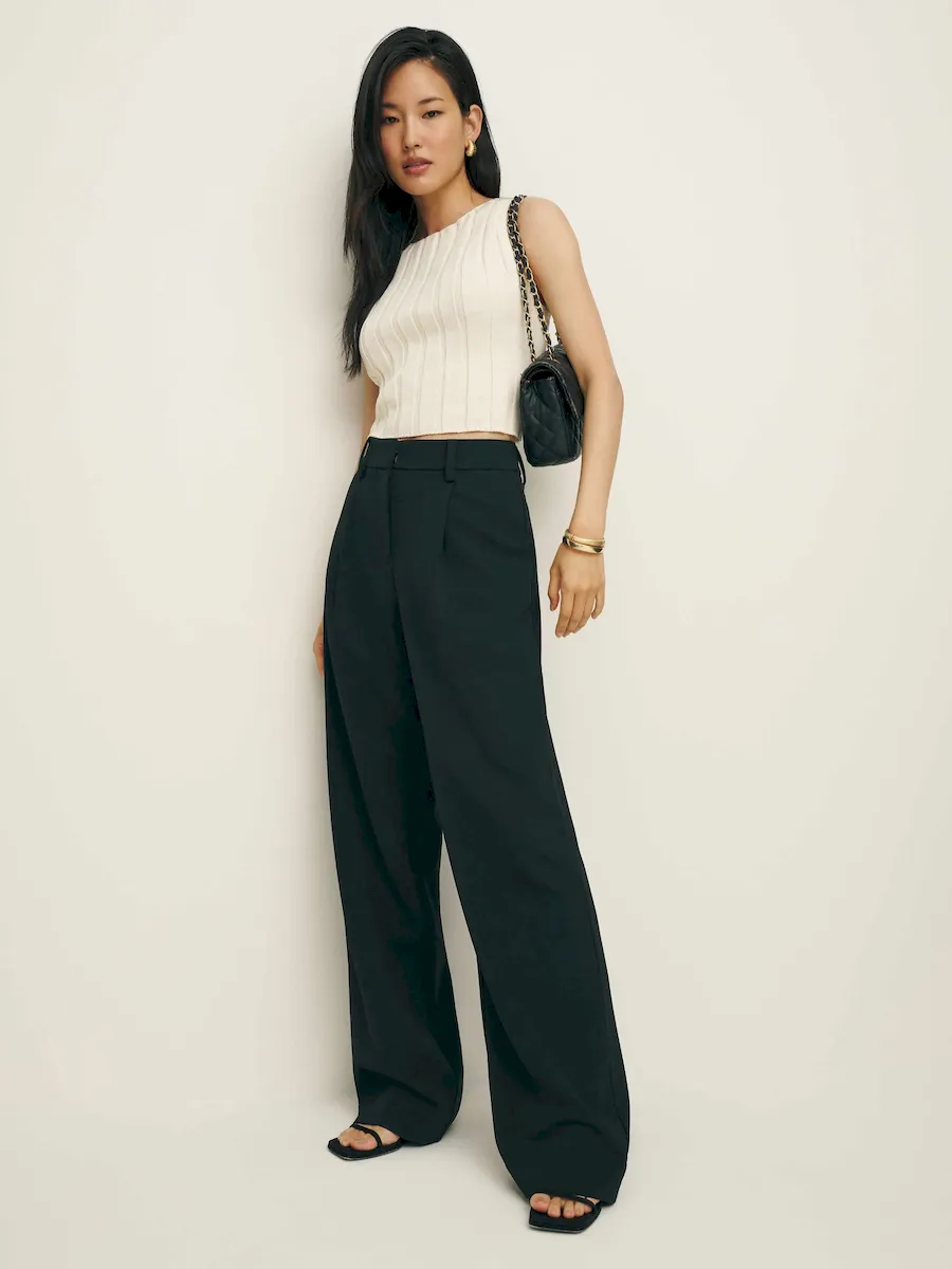 The model is wearing a size 0 and has a 24″ waist, 34″ hips.