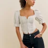 The model is wearing a size 0 and is 5’10”, 23″ waist, 35.5″ hips, 32.5″ bust.