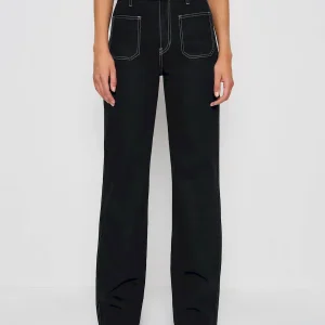 The model is wearing a size 25 and has a 25″ waist, 34.5″ hips.