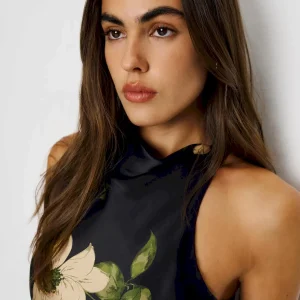 non-adjustable straps, cowl neckline.