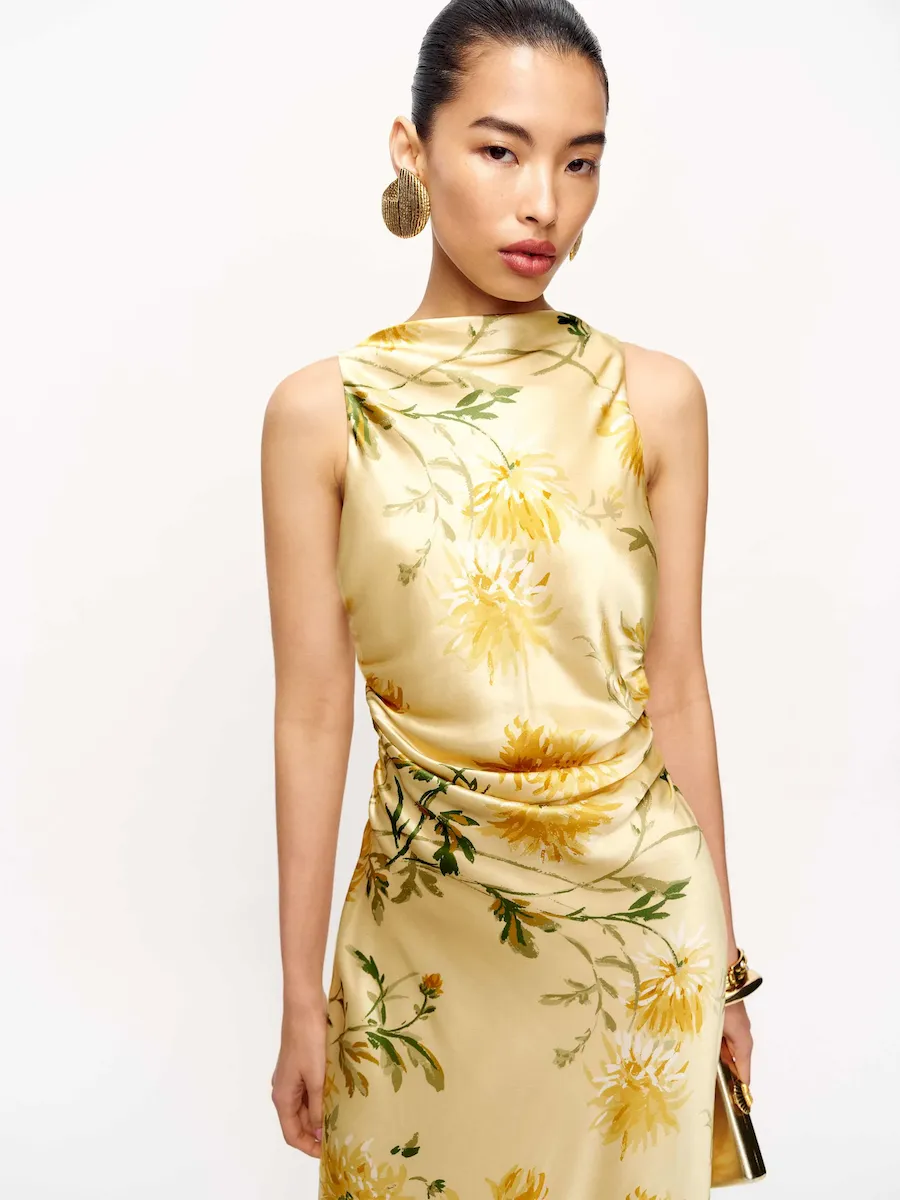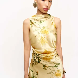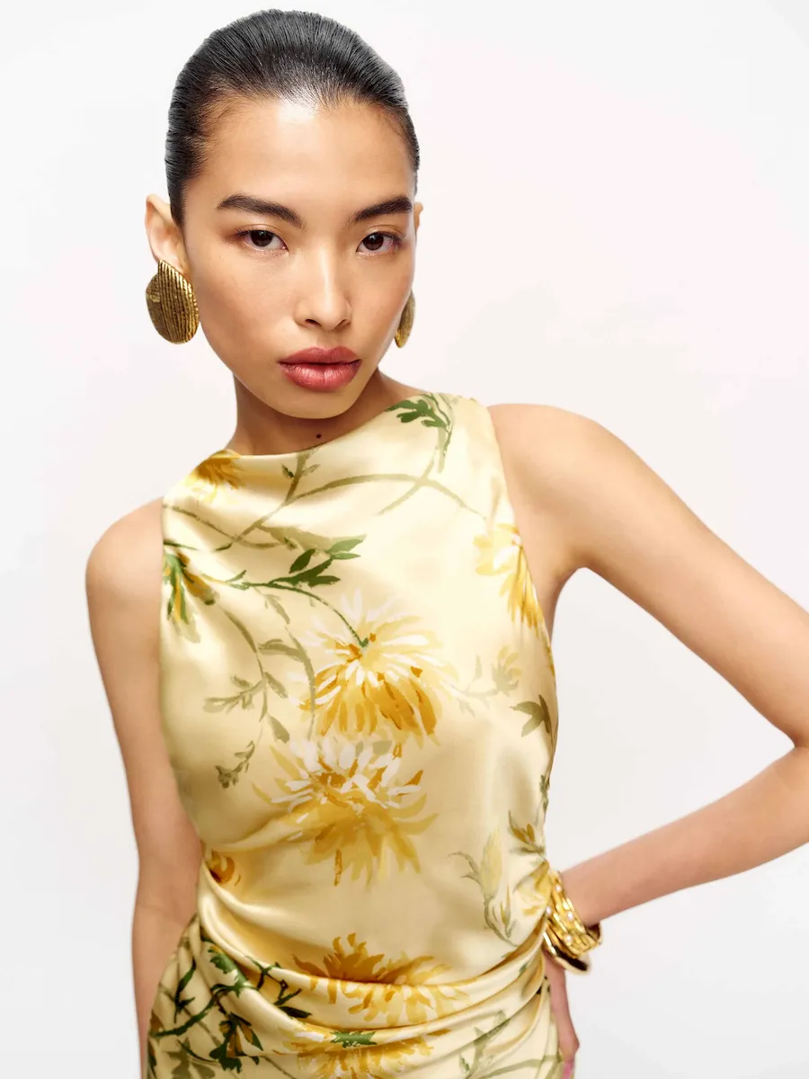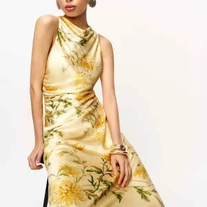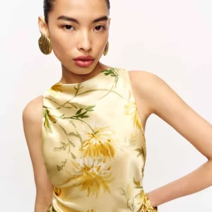 non-adjustable straps, cowl neckline.