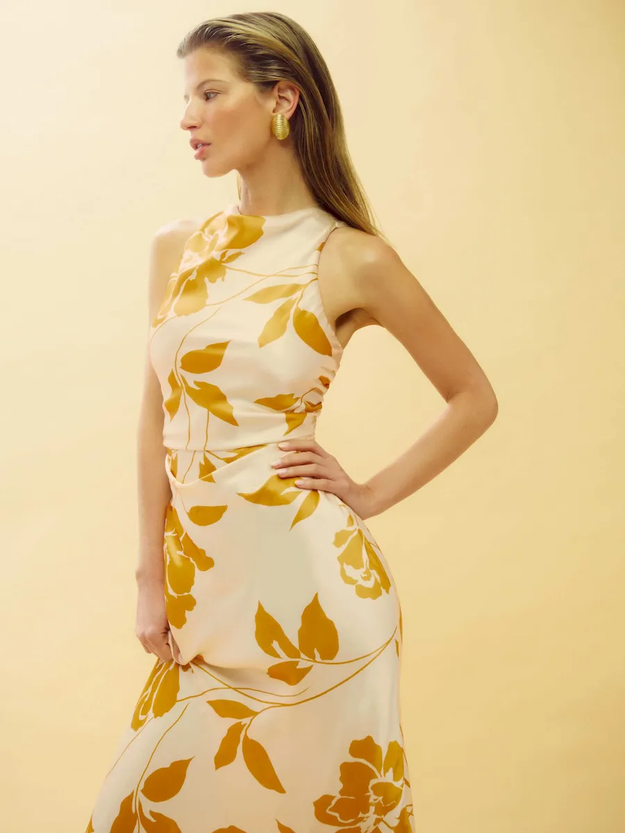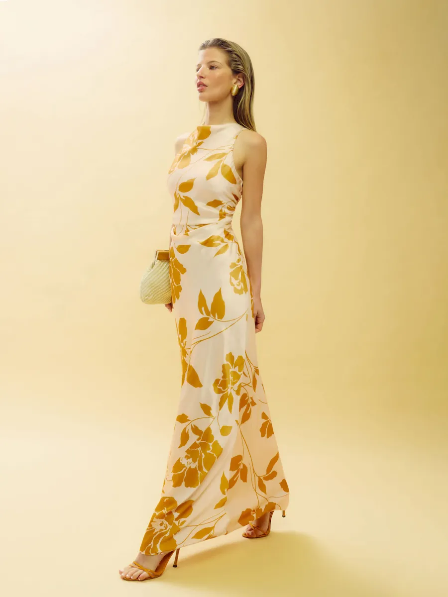 Intended to graze the floor when worn with heels. Hemming may be necessary to achieve desired length.