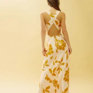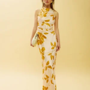 The model is wearing a size 0 and is 5’7″, 23″ waist, 34″ hips, 32″ bust.