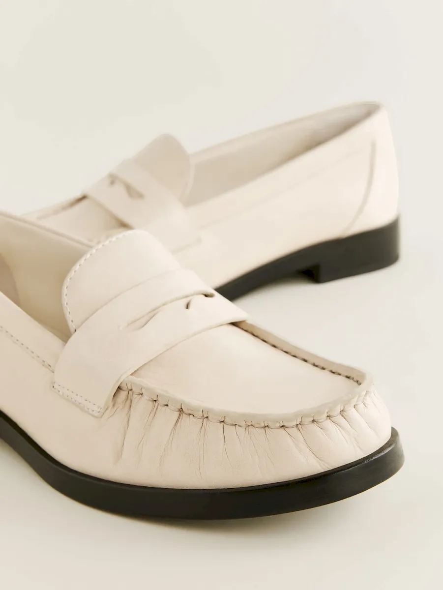 classic penny loafer detail on upperand moc stitch detail on upper.