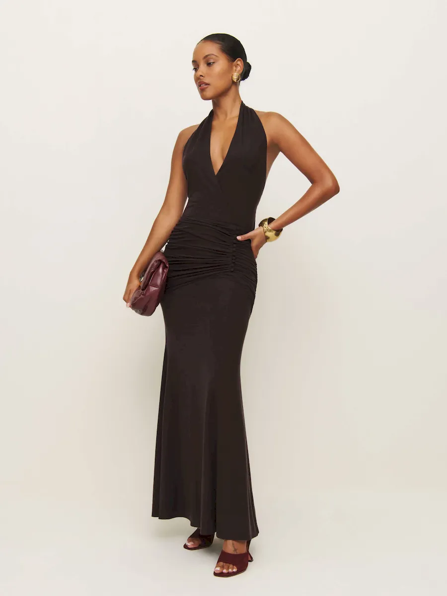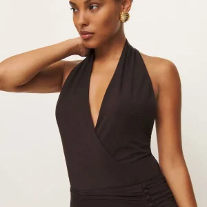 The model is wearing a size XS and is 5’9″, 23.5″ waist, 34″ hips, 34″ bust.