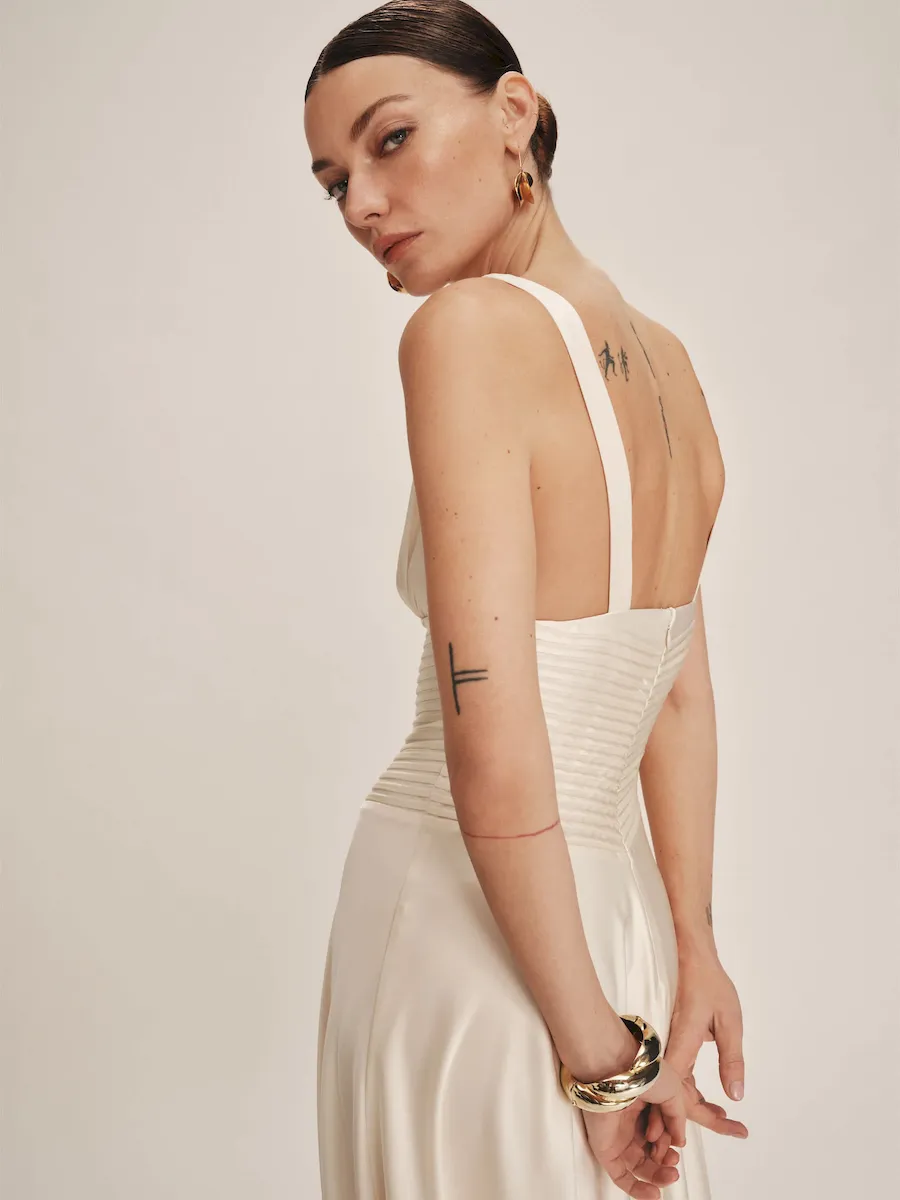 Made with 60% wood pulp and 40% repurposed waste. Feels way smoother and sexier than it sounds. Meet Naia™️ Renew, our silk alternative that cuts carbon and other harmful impacts of silk without changing any of the stuff you love about it.