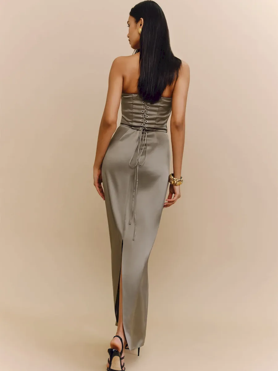 Designed to be fitted at bodice with a column skirt.See our size & fit guide.