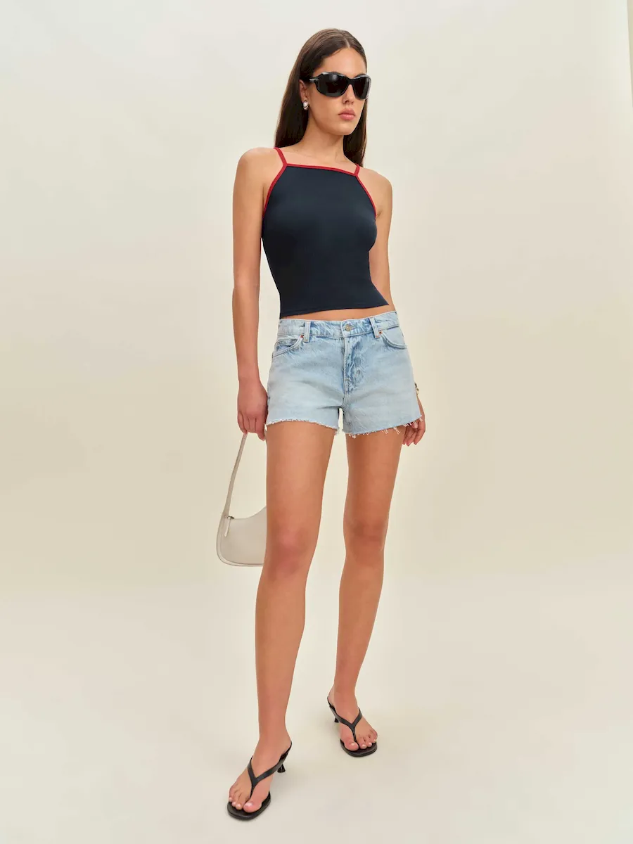 The model is wearing a size XS and is 5′ 9.5″, 24″ waist, 34.5″ hips, 34″ bust.