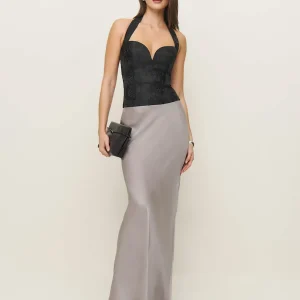 The model is wearing a size 0 and is 5’9″, 24″ waist, 34″ hips, 31″ bust.