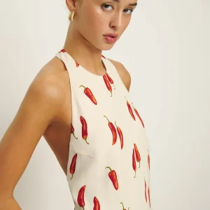 non-adjustable straps, halter neckline.