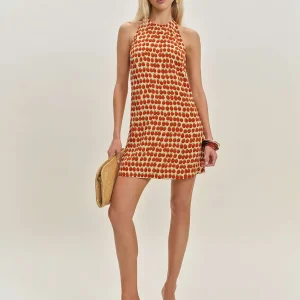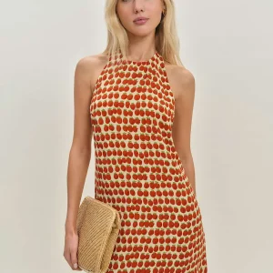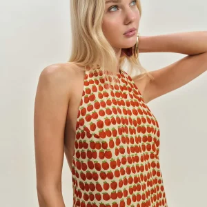 The model is wearing a size 0 and is 5’9″, 22″ waist, 35.5″ hips, 33.5″ bust.