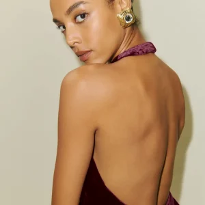 The model is wearing a size 4 and is 5’11”, 26″ waist, 38″ hips, 35″ bust.