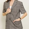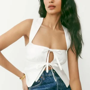 The model is wearing a size 0 and is 5’9″, 24″ waist, 32.5″ hips, 31″ bust.