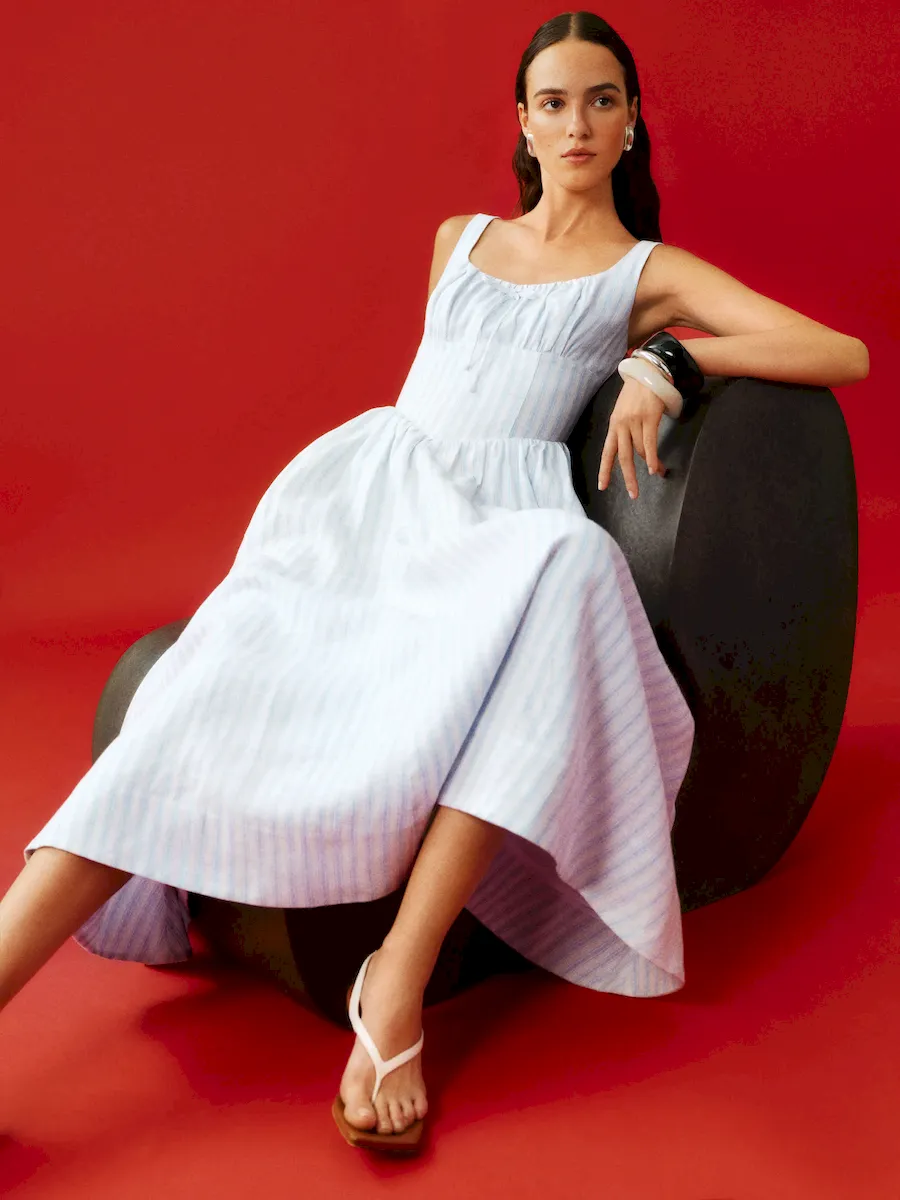 This is a lightweight linen fabric – 100% linen. Wash cold + line dry. More onfabric & care.
