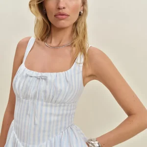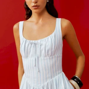 back smocking, adjustable straps, scoop neckline.