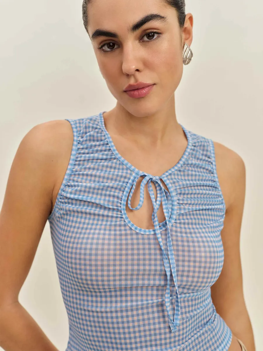 The model is wearing a size XS and is 5′ 9.5″, 24″ waist, 34.5″ hips, 34″ bust.
