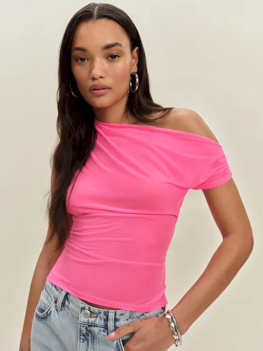The model is wearing a size XS and is 5’10”, 23″ waist, 34″ hips, 32″ bust.