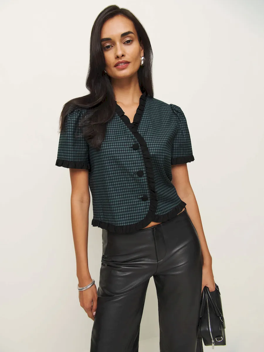 The model is wearing a size XS and is 5’9″, 25″ waist, 35″ hips, 32″ bust.
