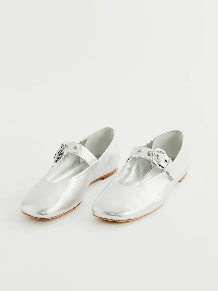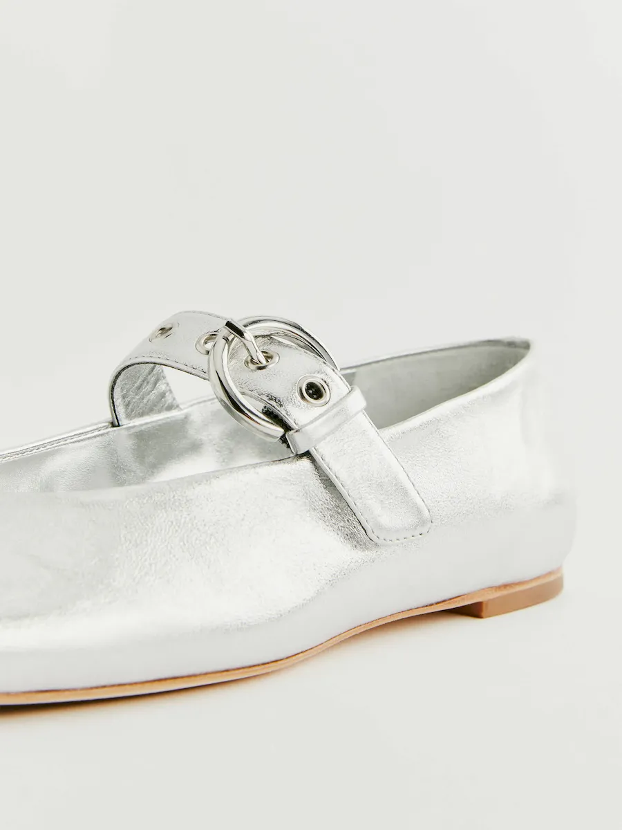 Upper is made from soft foil metallic leather with high shine and subtle surface texture.