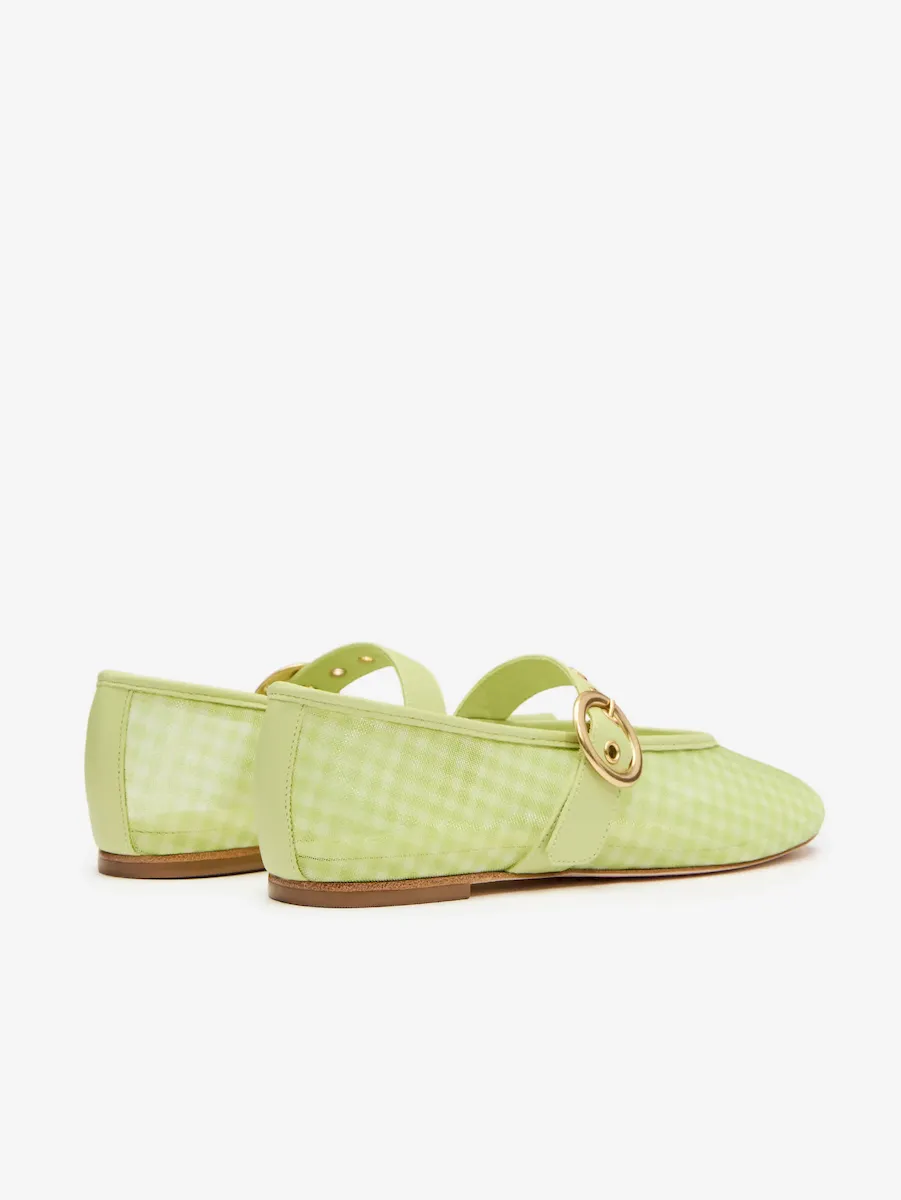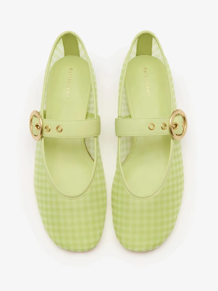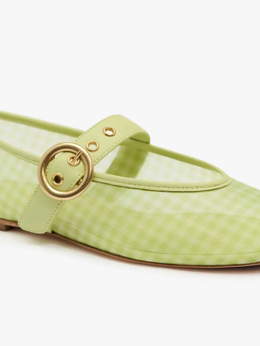 Gingham printed deadstock mesh. Spot clean. More onfabric & care.