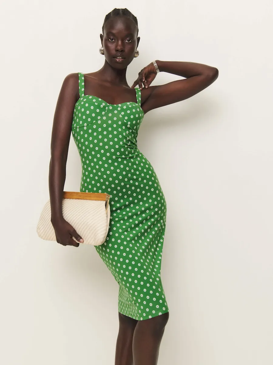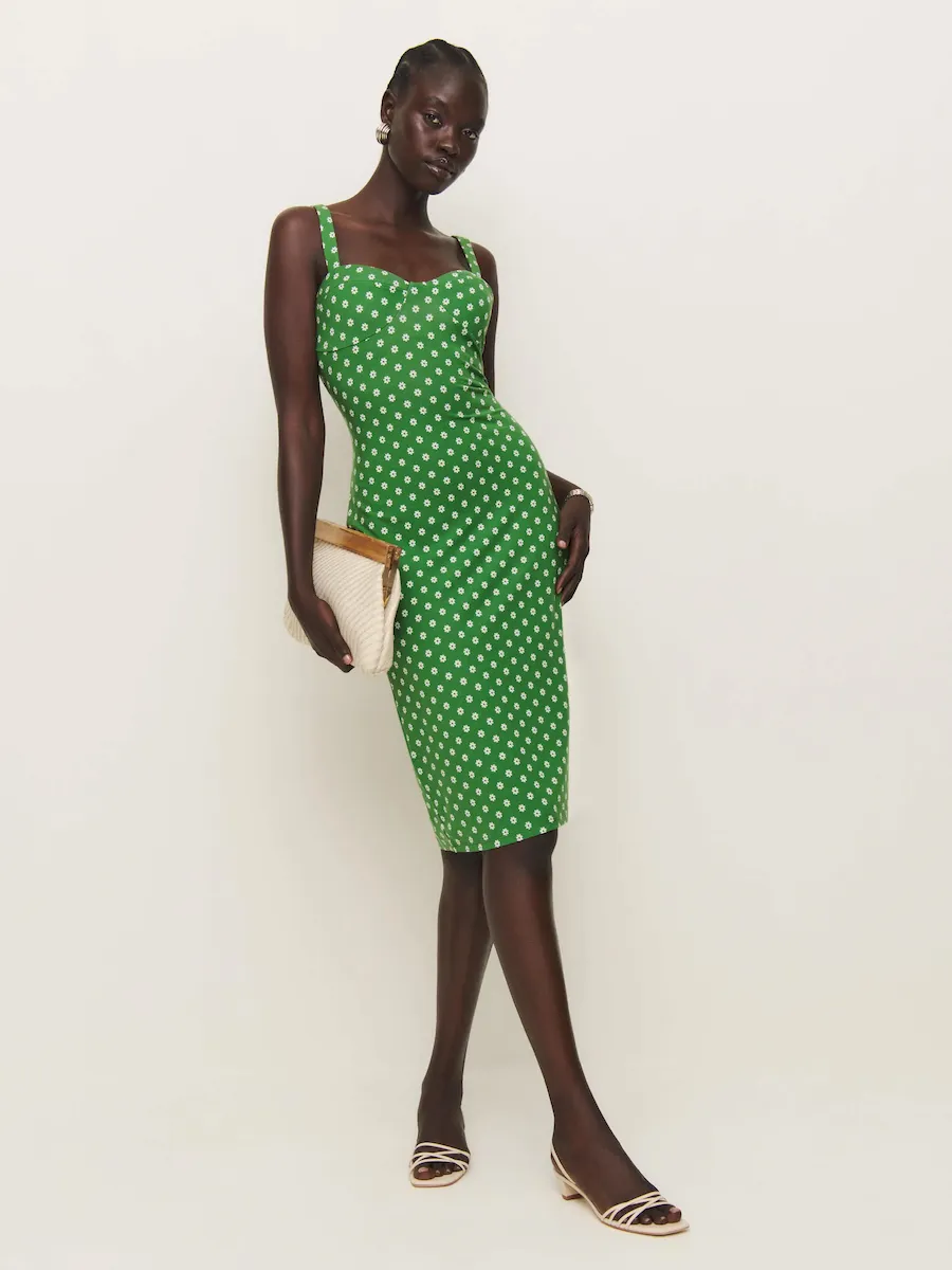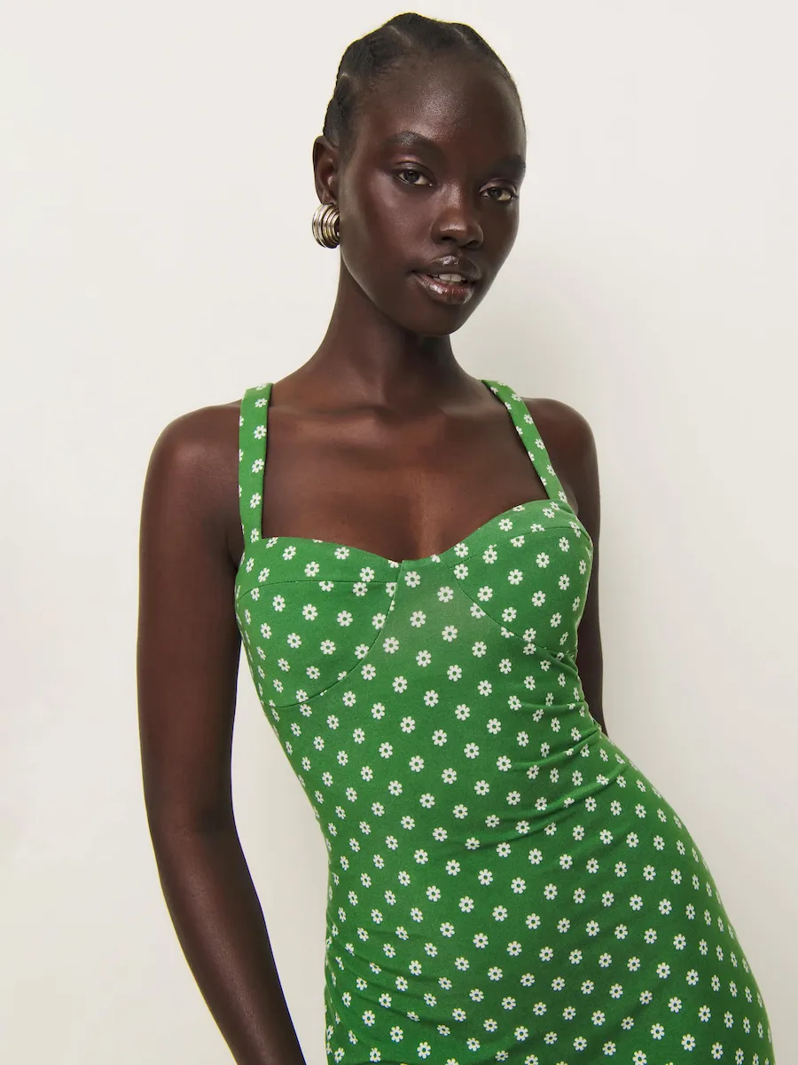 The model is wearing a size XS and is 5’10”, 25″ waist, 35″ hips, 32″ bust.