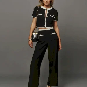 The model is wearing a size 0 and is 5’9″, 23″ waist, 34″ hips, 32″ bust.