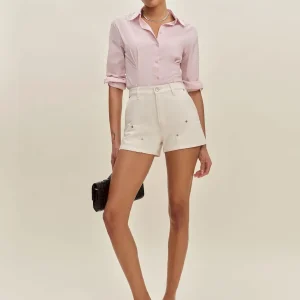 product size: 27, inseam: 3″, front rise: 12 1/8″, leg opening: 25″.