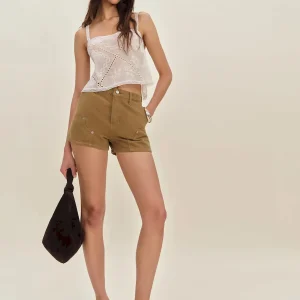 product size: 27, inseam: 3″, front rise: 12 1/8″, leg opening: 25″.