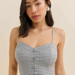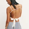 The model is wearing a size 2 and is 5’9″, 25″ waist, 36.5″ hips, 34″ bust.