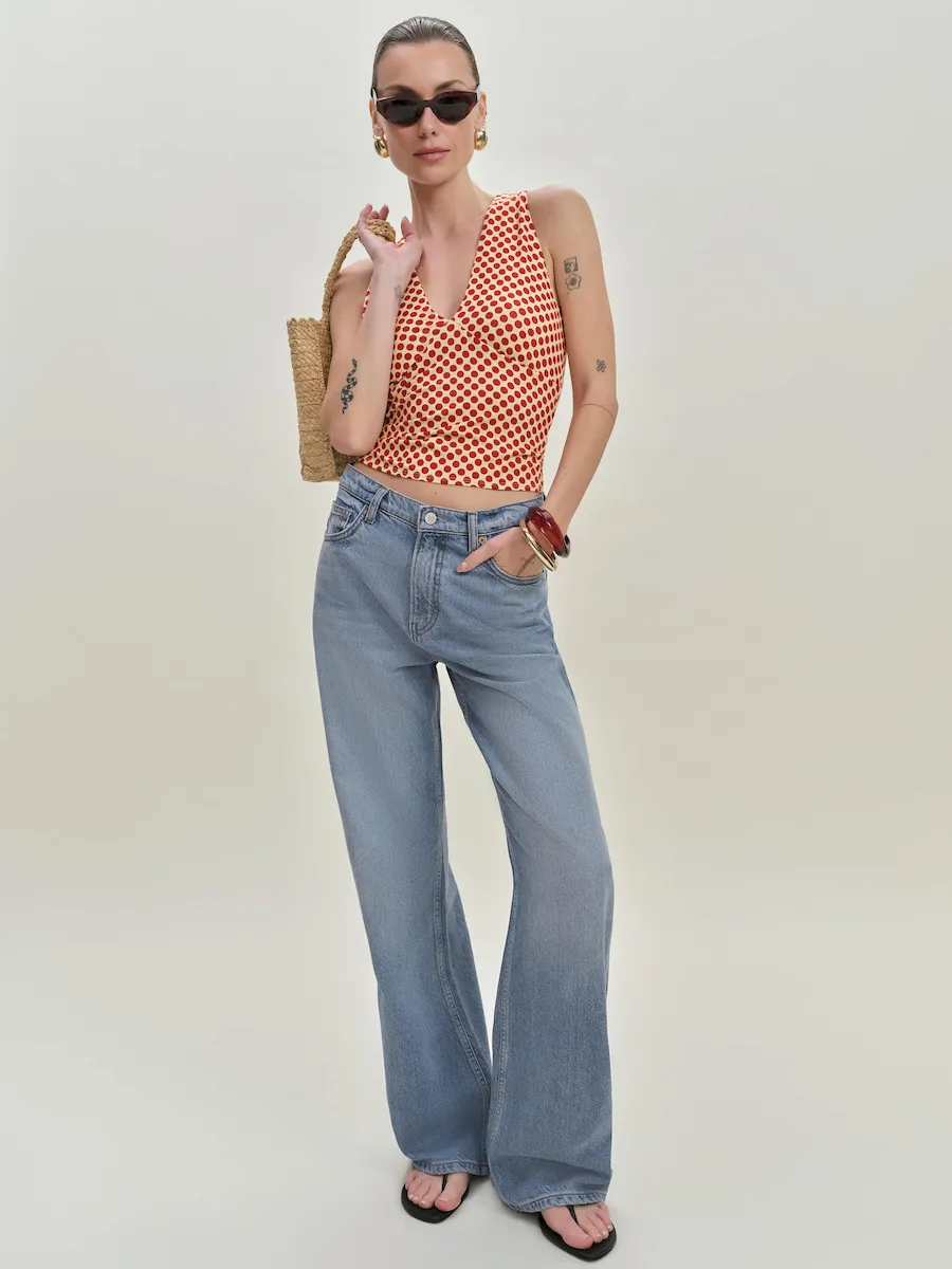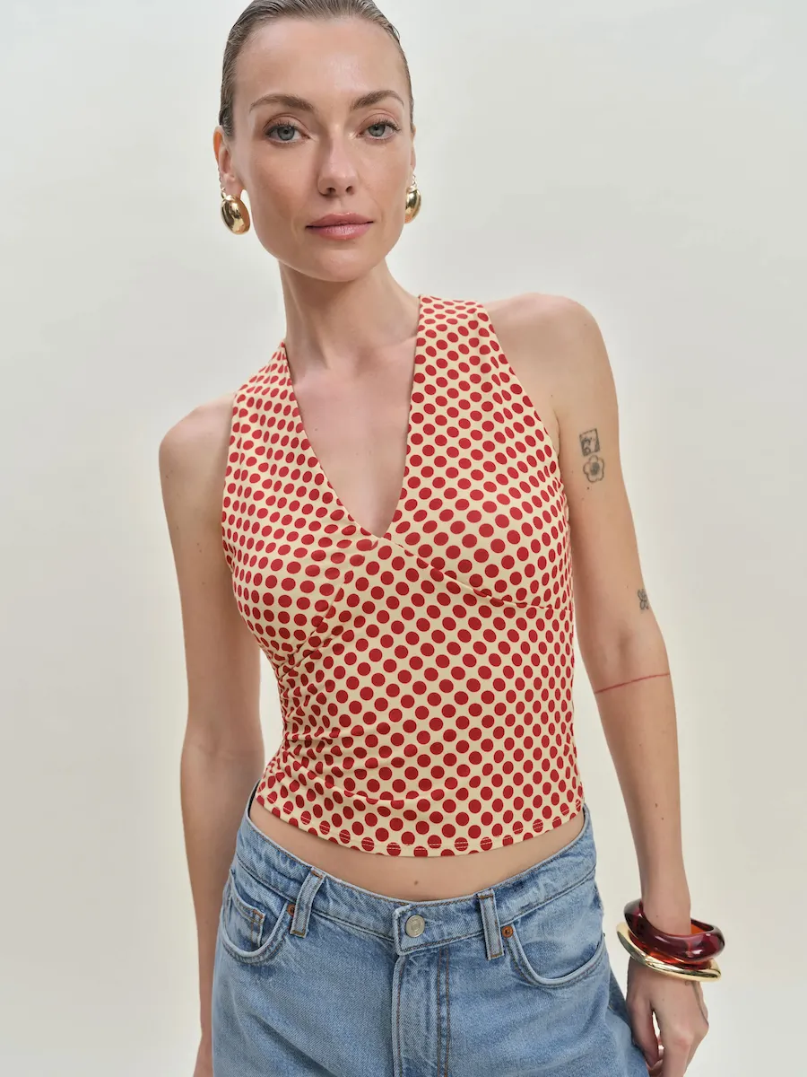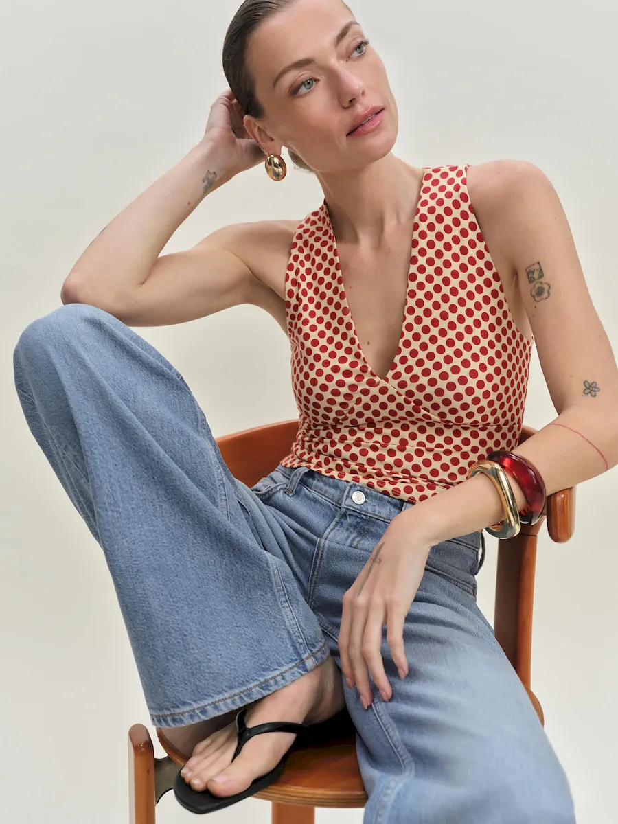 The model is wearing a size XS and is 5’10”, 25″ waist, 34.5″ hips, 31″ bust.