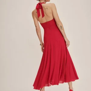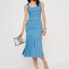 The model is wearing a size 0 and is 5’10”, 25″ waist, 34.5″ hips, 31″ bust.