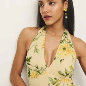 The model is wearing a size 4 and is 5’11”, 26″ waist, 38″ hips, 35″ bust.