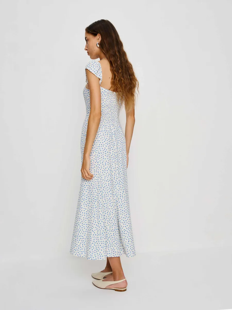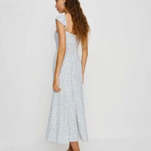 back smocking, sweetheart neckline.
