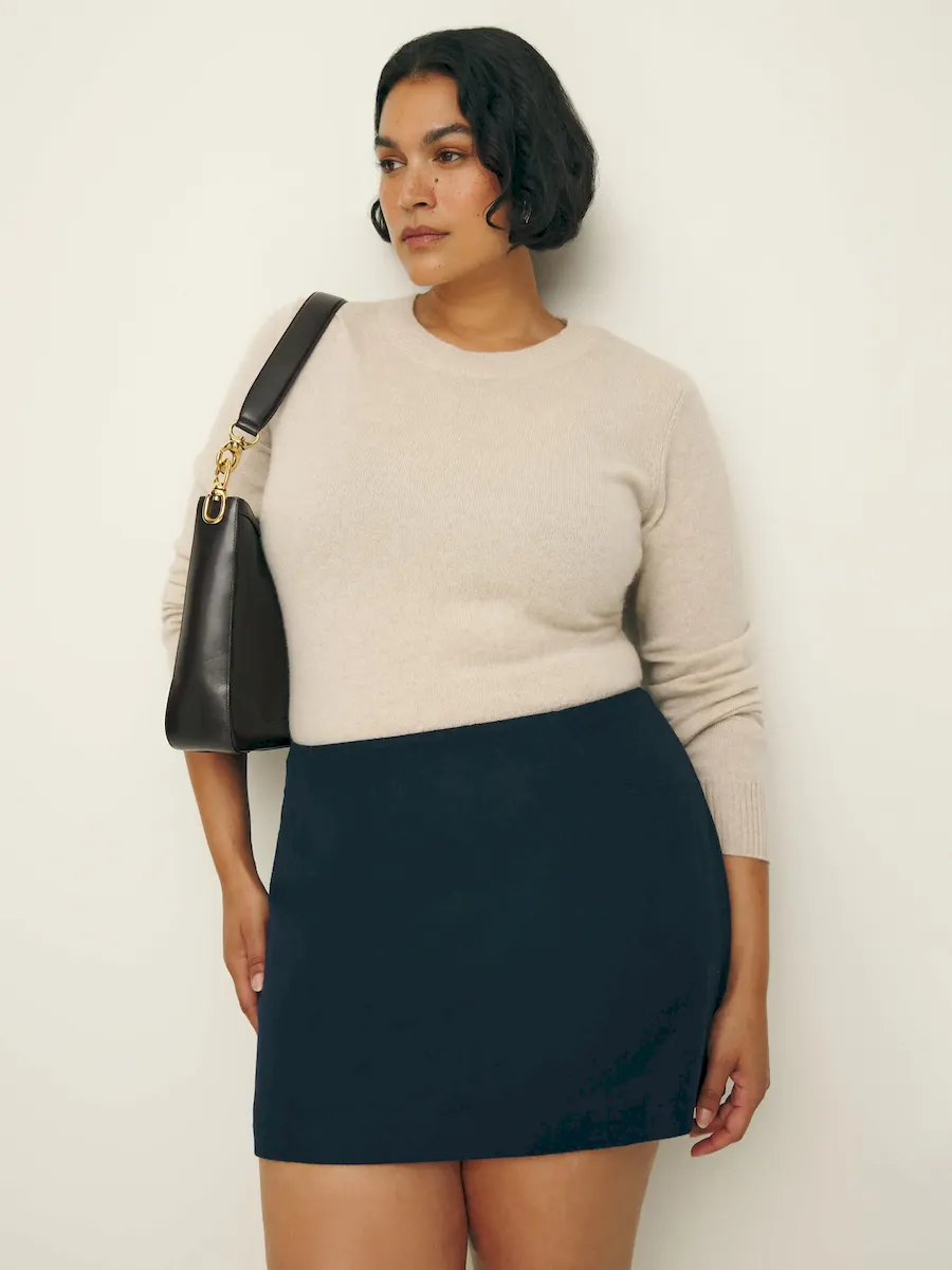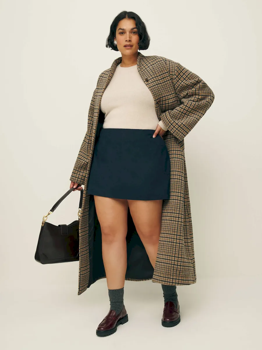 The model is wearing a size 14 and has a 29″ waist, 43.5″ hips.
