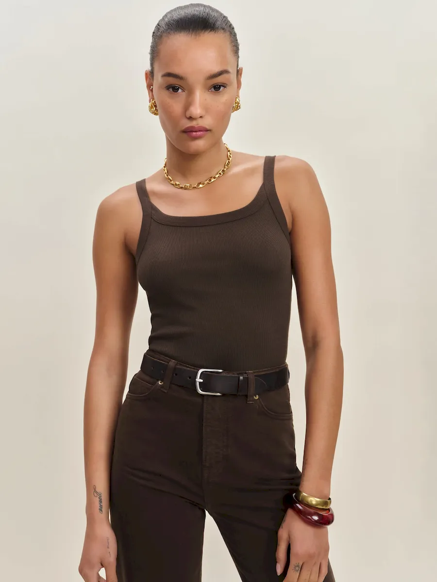 This is a 2×1 medium weight rib knit fabric with moderate stretch made from 97% Organically Grown Cotton and 3% Spandex. Hand wash + dry flat. More onfabric & care.