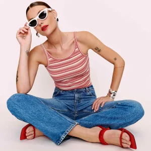 The model is wearing a size XS and is 5’10”, 25″ waist, 34.5″ hips, 31″ bust.