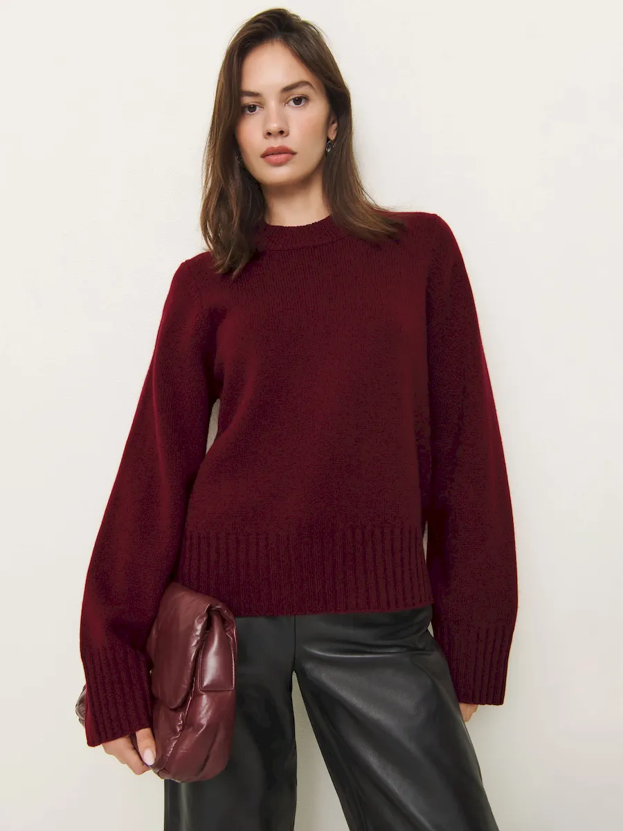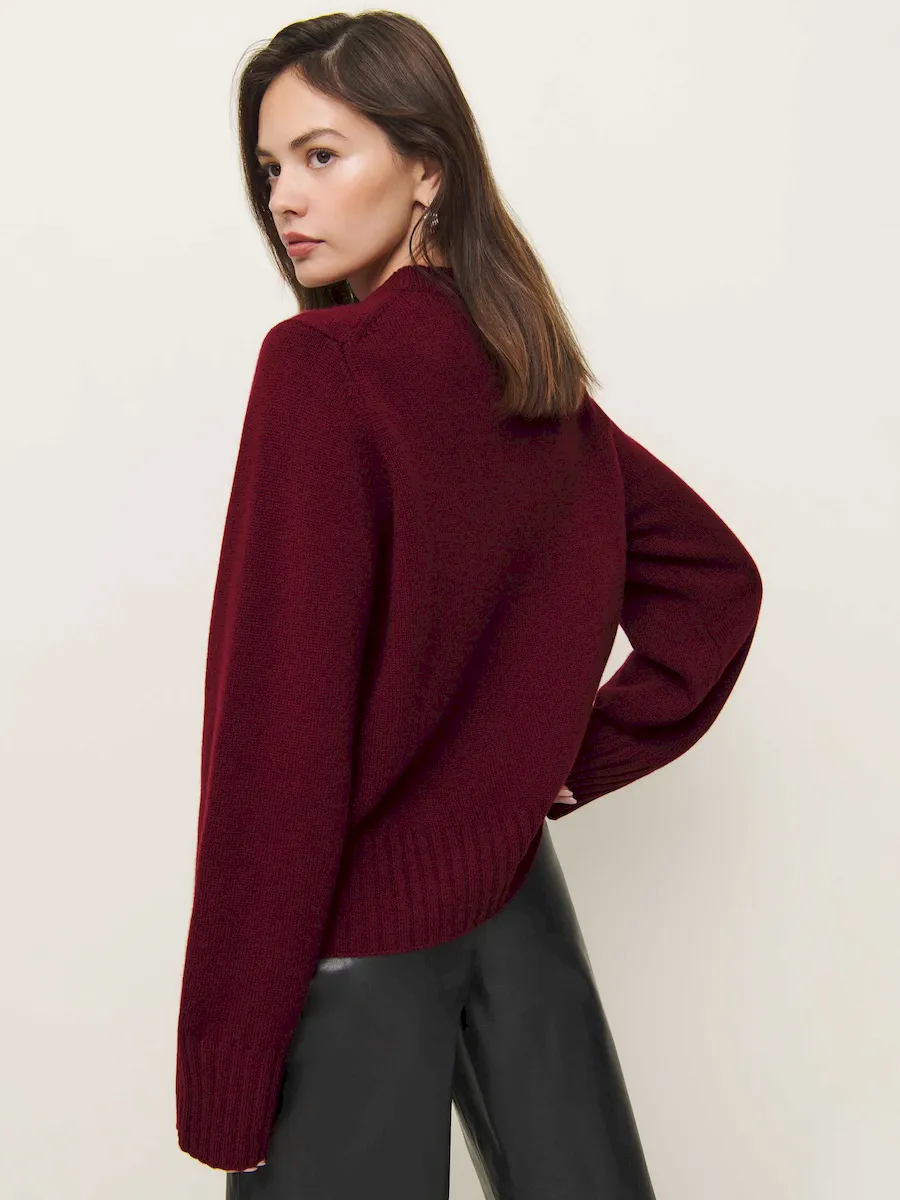 This sweater is made with 100% traceable NATIVA™️ wool sourced from a transitional regenerative farm. Regenerative practices are super different from conventional methods, so it takes a lot of time, effort, and resources to make the switch. We think that regenerative is the future, so we’re excited to support it from the ground up with each sweater we make. Dry clean only. More onfabric & care.