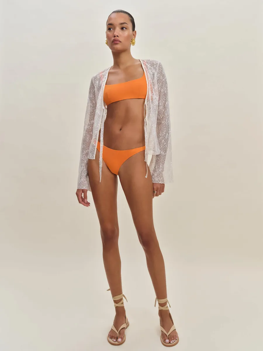 EVO by Fulgar®️ is a polyamide fiber that’s made with renewable, naturally growing plants instead of petroleum. Same stretch and durability as a regular nylon bathing suit minus all the fossil fuels.