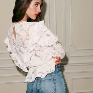 This is deadstock lace fabric features a high-coverage floral motif on a refined mesh base, made from 100% Polyester. Hand wash + dry flat. More onfabric & care.
