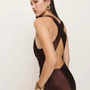 The model is wearing a size 0 and is 5’9″, 23″ waist, 34″ hips, 32″ bust.