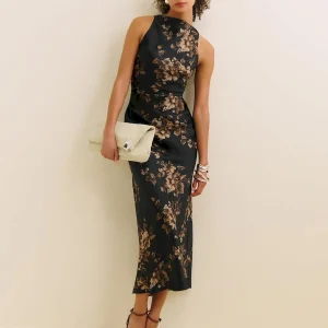 The model is wearing a size 0 and is 5’9″, 24″ waist, 32.5″ hips, 31″ bust.