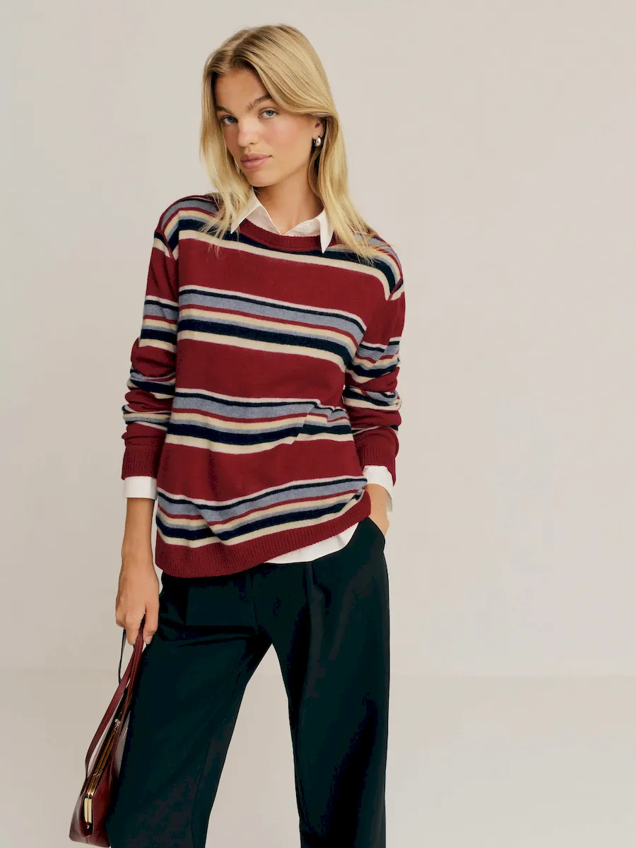This is a fine-gauge recycled cashmere blend sweater knit – 95% Recycled Cashmere, 5% Cashmere.