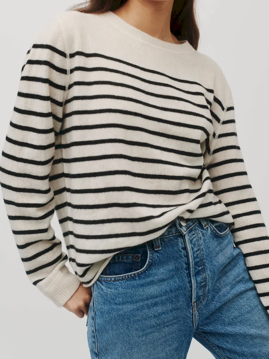 This is a fine-gauge recycled cashmere blend sweater knit – 95% Recycled Cashmere, 5% Cashmere. Hand wash + dry flat. More onfabric & care.