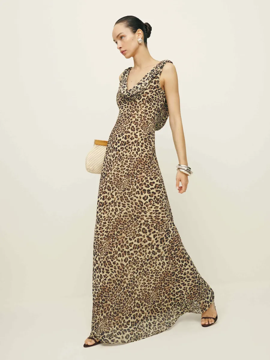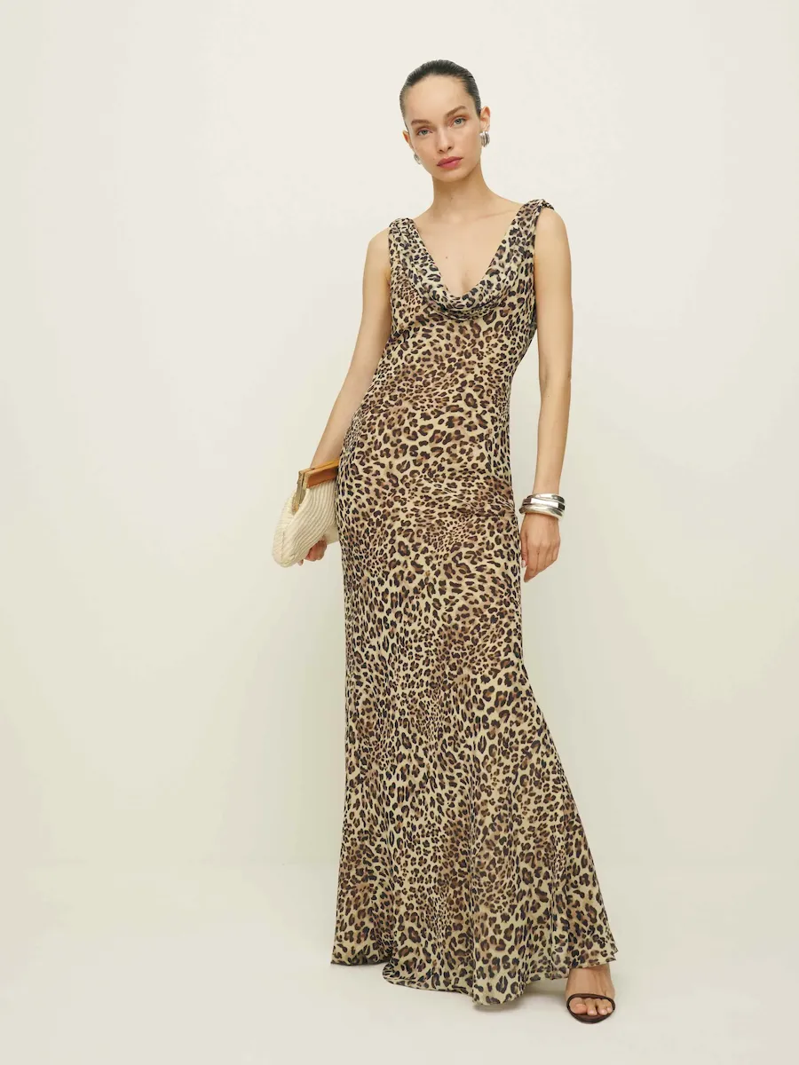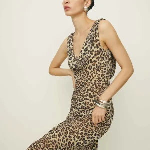The model is wearing a size 0 and is 5’9″, 23″ waist, 34″ hips, 32″ bust.