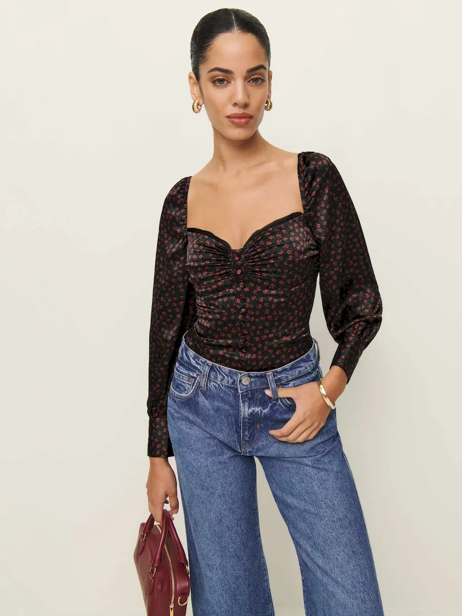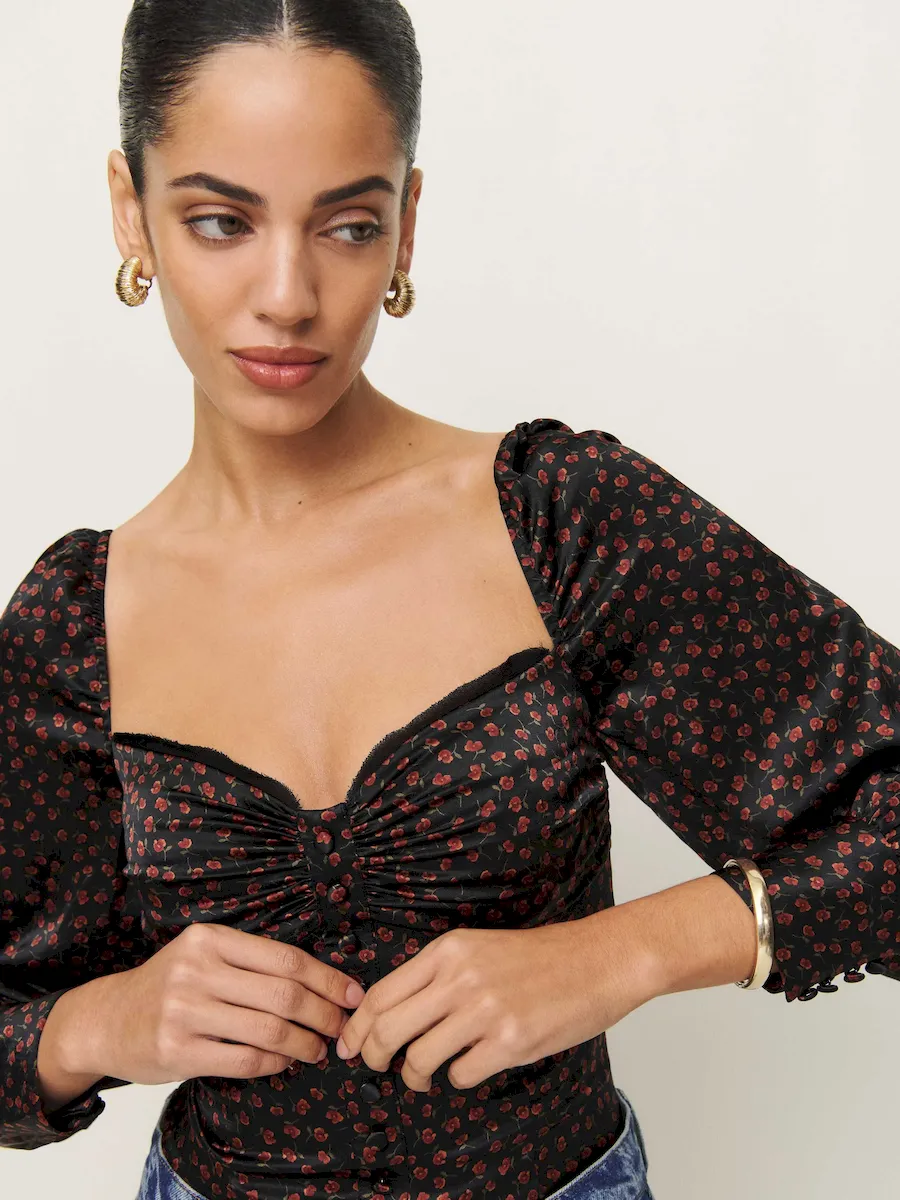 This is a lightweight silk charmeuse fabric – 100% silk. Dry clean only. More onfabric & care.
