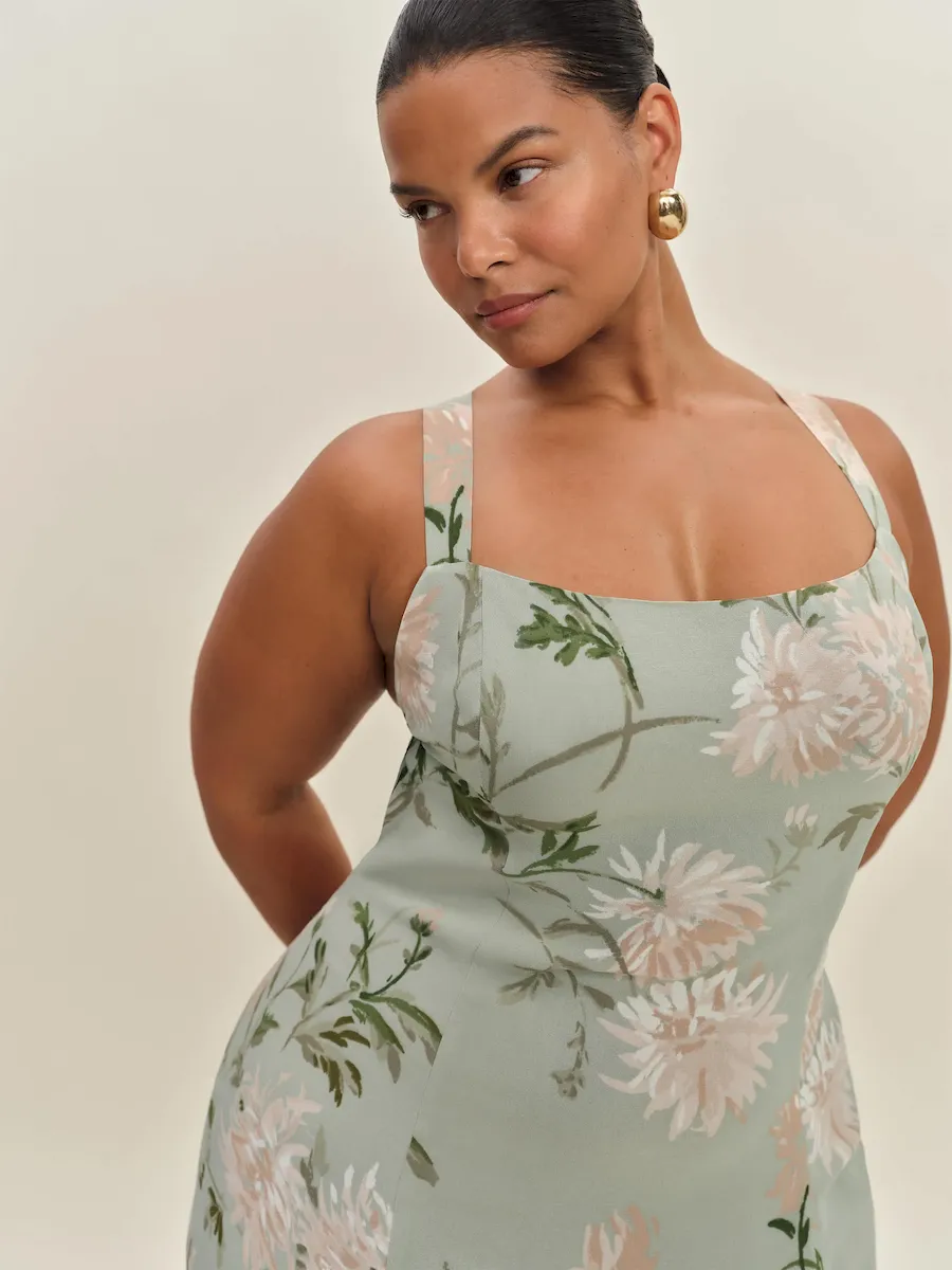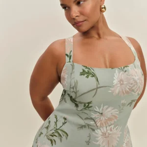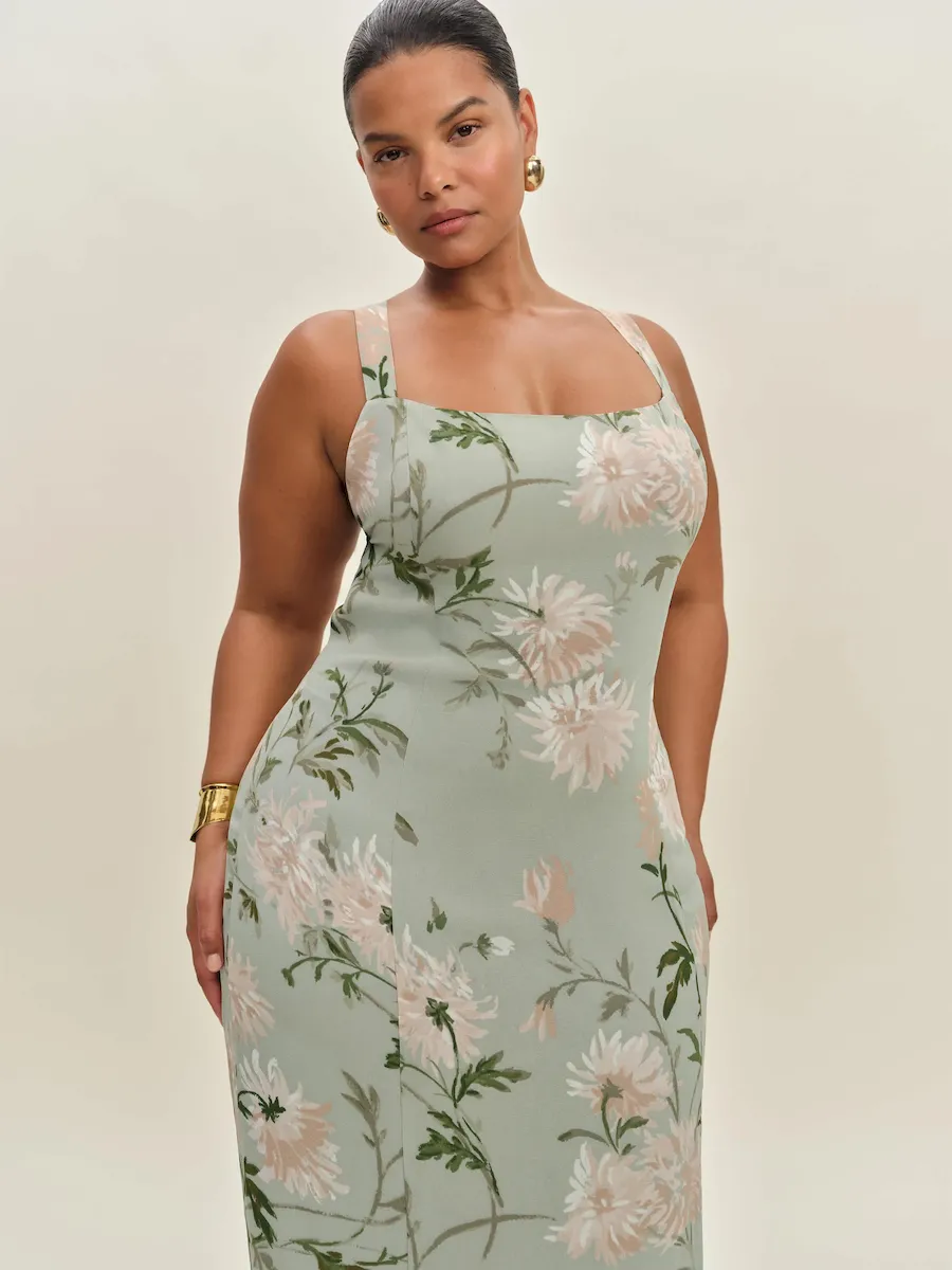 The model is wearing a size 14 and is 5’8″, 33″ waist, 50″ hips, 42″ bust.