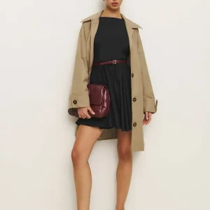 The model is wearing a size 0 and is 5’8″, 23″ waist, 35.5″ hips, 30″ bust.