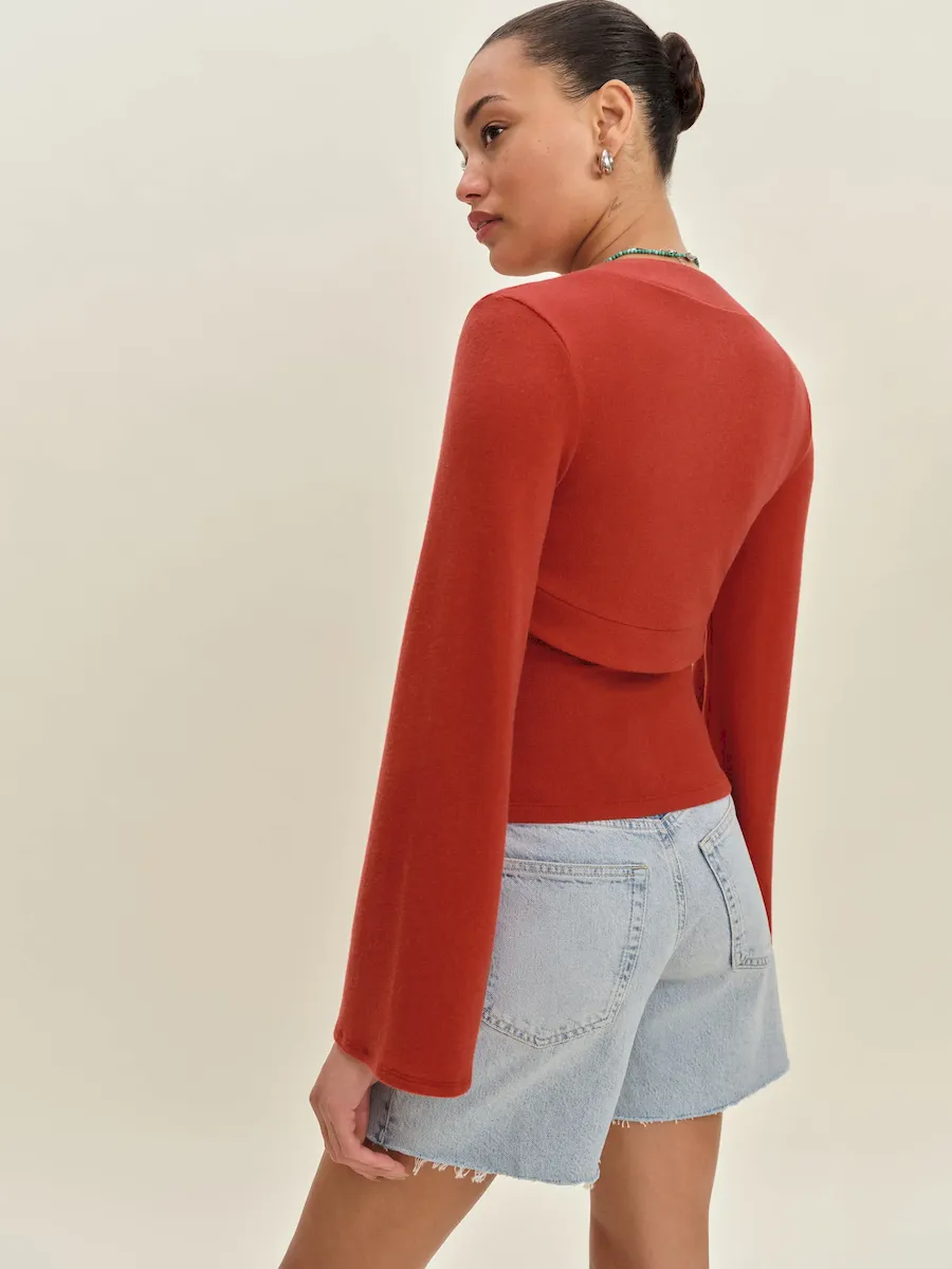 The model is wearing a size XS and is 5’10”, 23″ waist, 34″ hips, 32″ bust.
